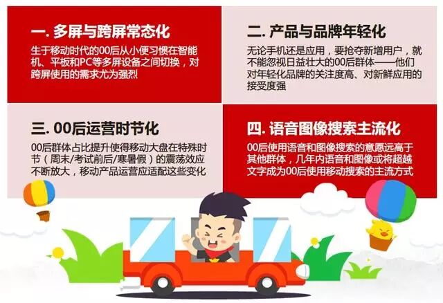 报告称,更值得重视的是,00后使用语音和图像搜索的意愿远高于其他群体,几年内语音和图像或将超越文字成为00后使用移动搜索的主流方式。对于从业者来说,紧跟上述趋势将有望在未来的移动互联网发展中把握住00后这一不断增长的用户群体。