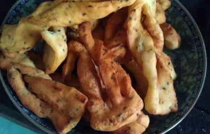 7.将做好的麻叶生胚放入油锅中炸至金黄捞出控干油份即可