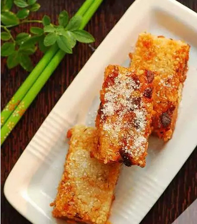 6.锅中热油,三成热时,中火,放入糍粑坯,炸至外表金黄取出控油