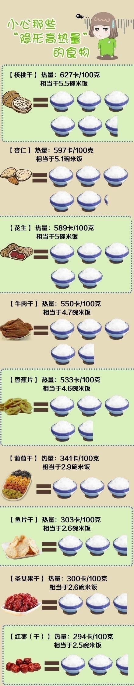 而那些不知不觉就被你干掉的零食与米饭之间是一个什么样的热量关系呢?看小编为你图解~