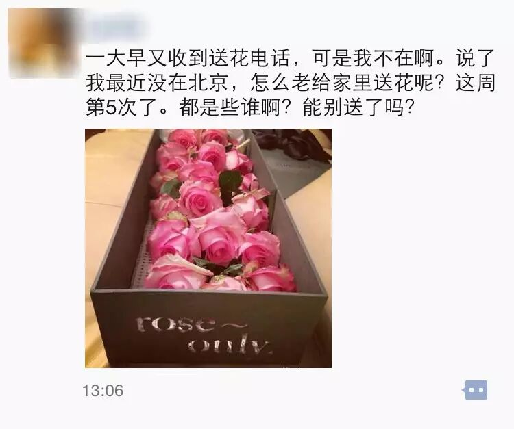2、节日到了,女神又收到花了呢,还有5个人送花!女神真受欢迎,被送花也困扰。这花好像是那个很贵的牌子吧,搜一下叫什么牌子吧。