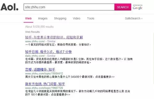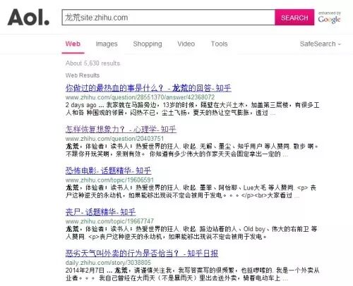 如输入“龙荒site:zhihu.com”,则显示结果为: