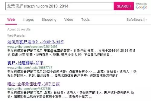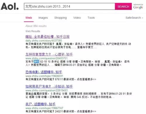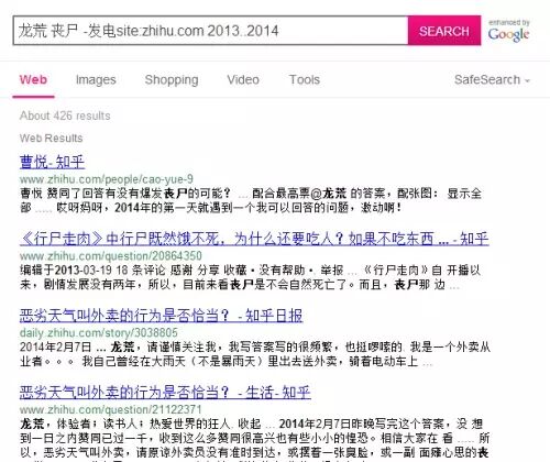 如输入龙荒site:zhihu.com 2013...2014,则显示结果为: