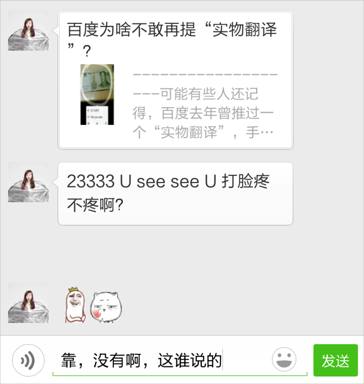 亲爱的你有木有下一个最新版的百度翻译用用看啊?!就在苹果应用商店的首页推荐上啊!!一打开Appstore就能看见啊!!!用用看然后再给个五星好评好吗?!!!!
