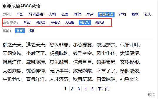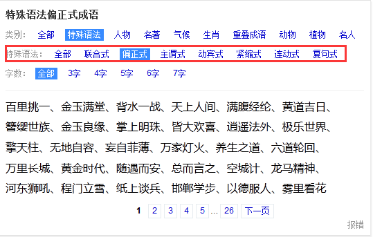 对于要写作业或者单纯想显摆的同学们,成语卡片还提供特殊语法和重叠成语搜索功能哦,如图~