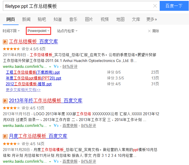 比如,又到月底了,领导:“小李啊,做个PPT总结一下咱们组这个月的工作进展。”我(面带微笑实际上心里一万头草泥马飞奔而过):“嗯好的没问题呢!”上网搜索模板,在文档格式限定中选择powerpoint,duang的一下,可爱的模板们就浮现了~