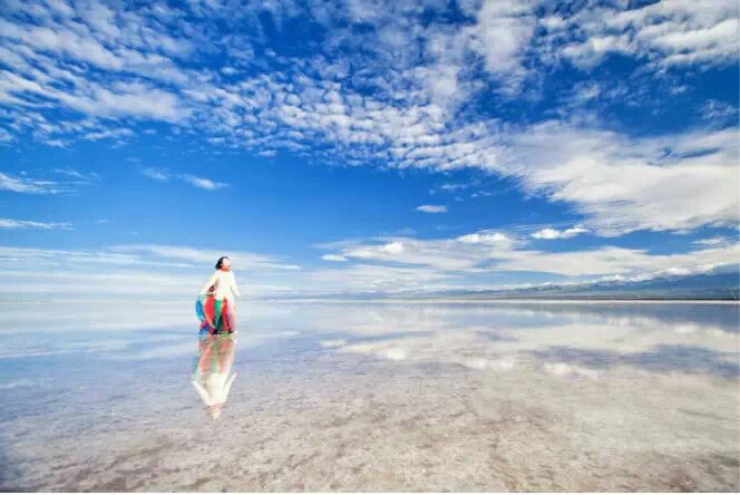 茶卡盐湖地处青海柴达木盆地东部的乌兰县茶卡镇,是古丝绸之路的重要站点。在这里,可以观看采盐船采盐时喷水吐盐的壮观场景、欣赏盐湖日出、晚霞的绚丽画卷,透过清盈的湖水,观赏形状各异,正在生长的栩栩如生的朵朵盐花,探求湖底世界的神秘,还能领略到涨潮后湖面上留下的滚滚盐涛奇观。