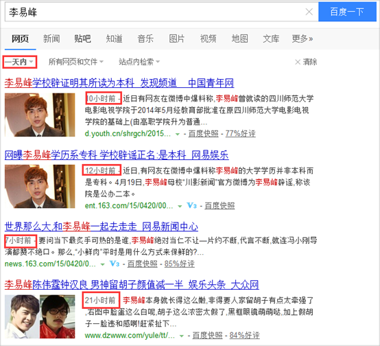 想抢在众多情敌之前知道李易峰的一切最新行踪!怎么办?限定搜索一天内的最新消息!
