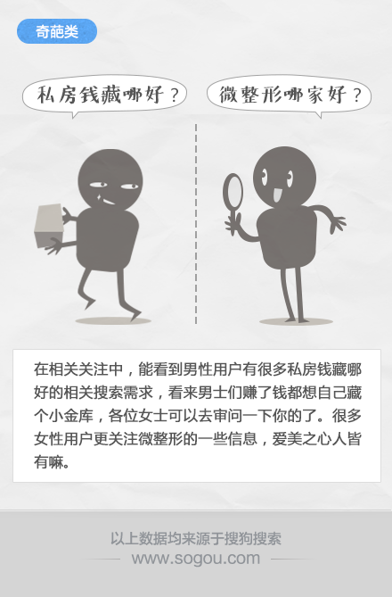 最让人啼笑皆非的是部分关注炒股的男性还会去搜如何藏私房钱?女性去搜韩国微整形等话题!
