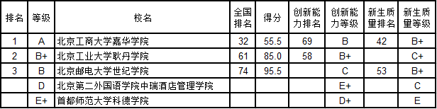 独立学院毕业生质量排名的计算过程:将每所学校的教师创新能力在全国独立学院中的名次,与生源质量在全国独立学院中的名次相加并除以2,得到毕业生得分(越小越好),将所有独立学院的毕业生得分按升序排列,即得到全国独立学院本科毕业生质量排行榜。毕业生得分相同的,创新能力高的学校排在前面。