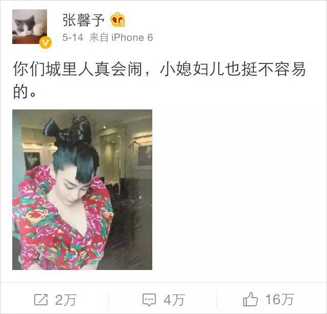 网友吐槽张馨予披着东北棉被走戛纳红毯。张馨予微博也回应“你们城里人真会闹,小媳妇儿也挺不容易的。”