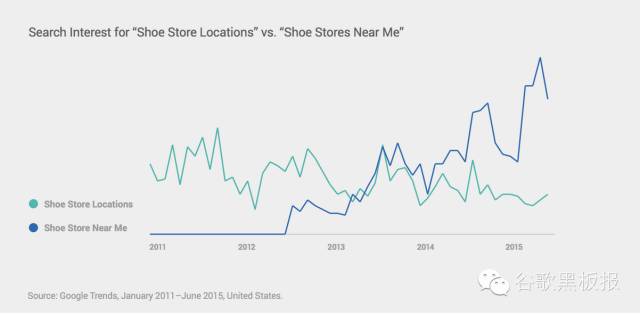 具体来讲,在过去连续两年的开学季期间,“附近鞋店”的搜索热度在八月份一路飙升,每年都会比上一年翻一番甚至更高。相反,“鞋店地址”搜索量却呈下降趋势。这说明人们不再提前规划购物出行路线了。只要有了“去那里逛逛吧”的想法,他们就会拿出手机规划路线并前往了。